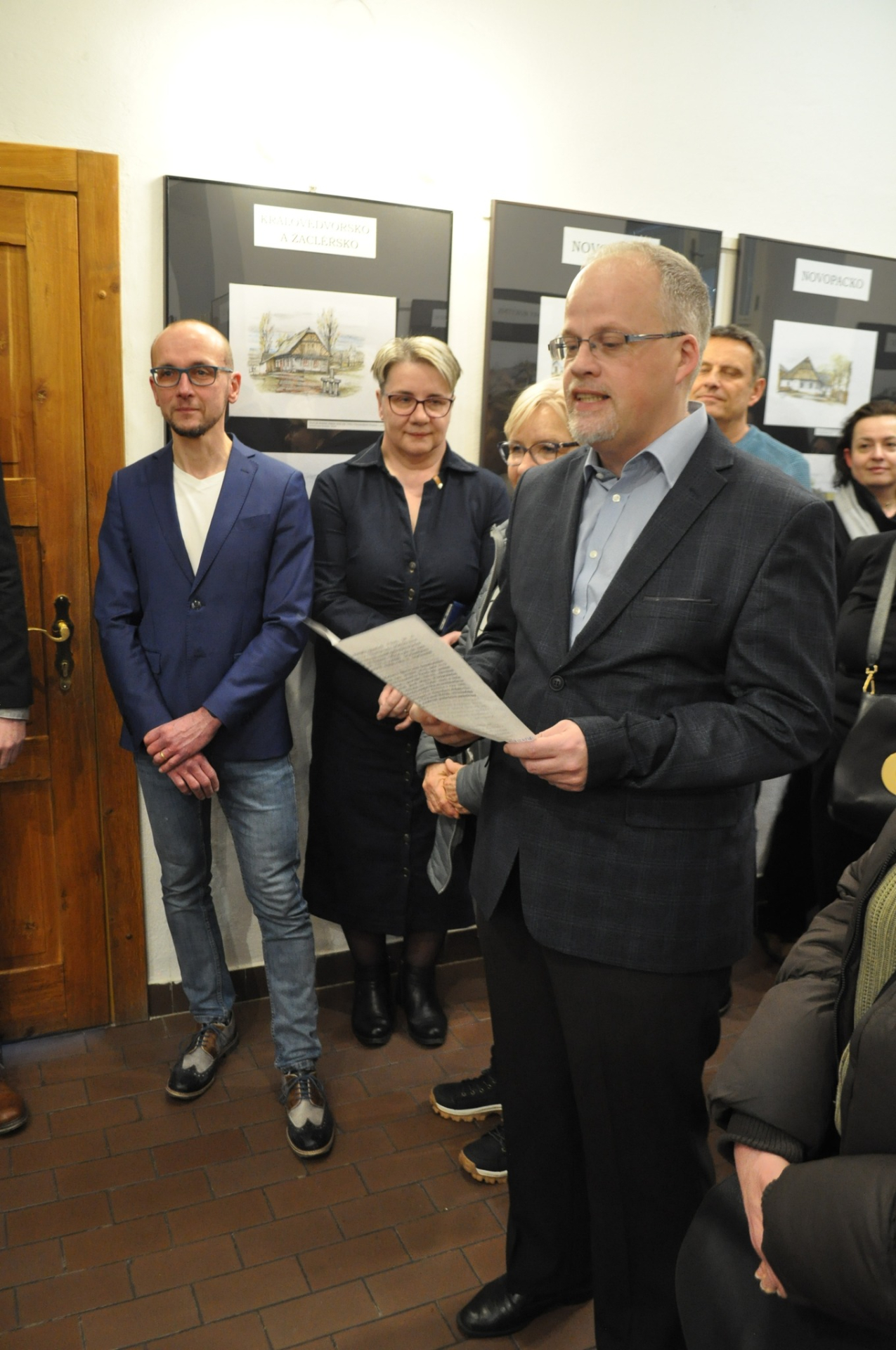 Vernisáž se konala ve čtvrtek 19. 2. 2026 od 17.00 hodin za účasti cca 100 hostů. O autorově tvorbě pohovořili ředitel muzea PhDr. Vlastimil Málek a kurátor výstavy PhDr. Ondřej Vašata. Hudební doprovod tvořili Jan Hauzr a Jan Kopřiva, v jejichž podání zazněly skladby Nebreč a Dědo.