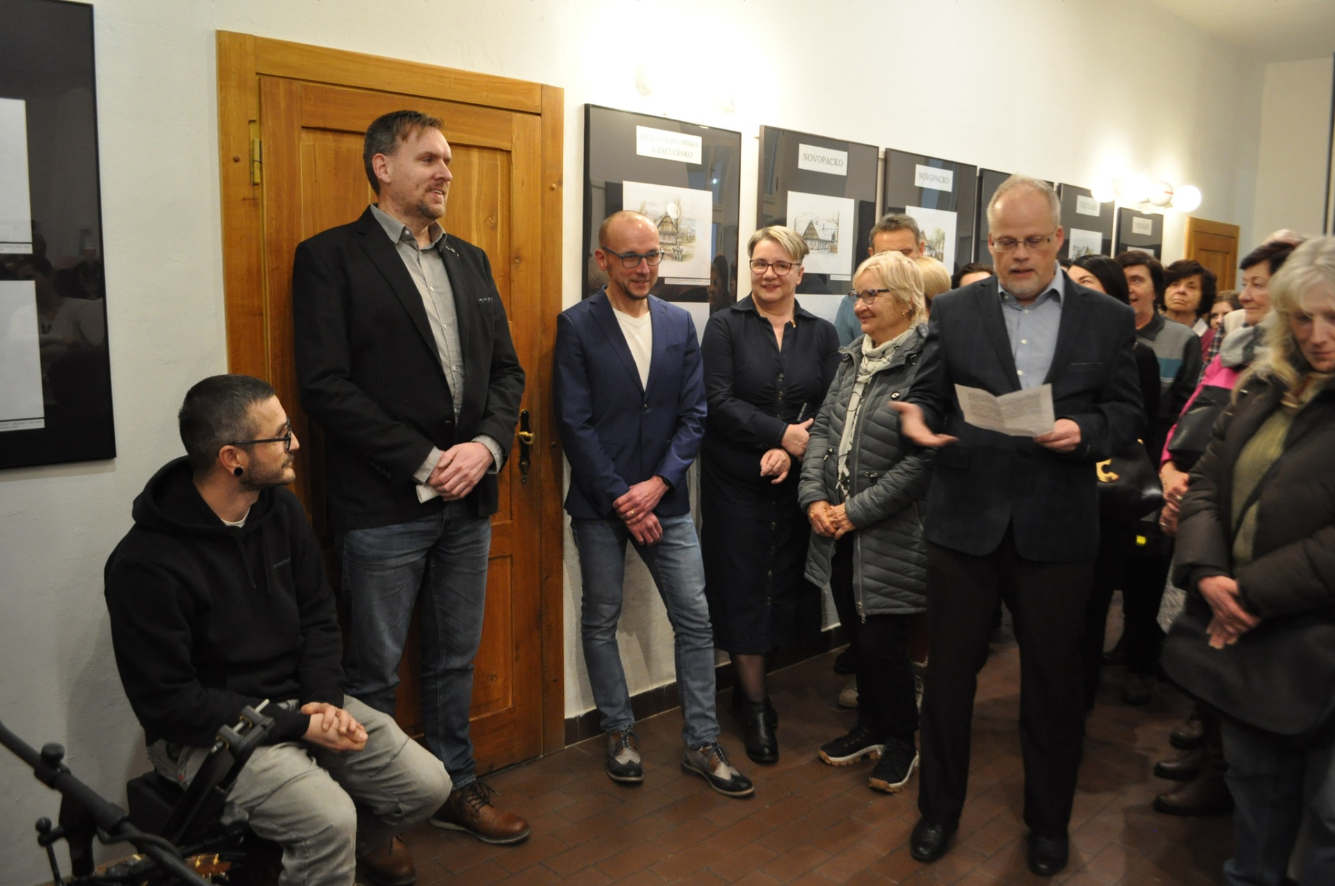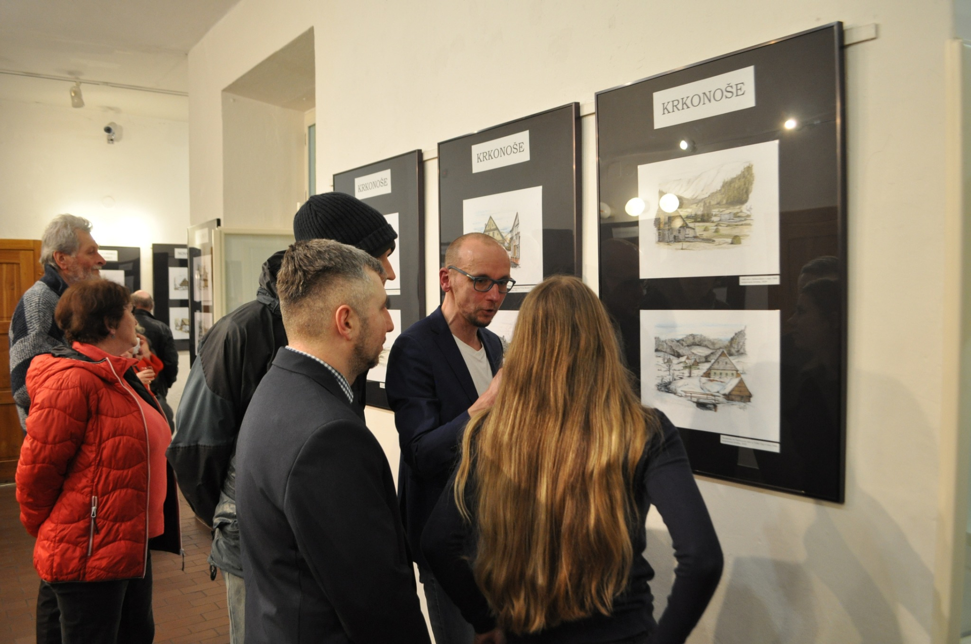 Trutnovský rodák a patriot Bc. Michal Vojtěch se již několik let věnuje kresbě lidové architektury severovýchodních Čech, ve které úročí svůj celoživotní zájem o historii a výtvarné umění. V rekonstrukčních kresbách pastelkami a tužkami, jež vznikají na základě předloh v podobě vzácných starých fotografií, přibližuje dnešním generacím krásu dávno zaniklých staveb našeho regionu. Prostřednictvím Vojtěchových kreseb se přeneseme do druhé poloviny 19. století a první poloviny 20. století. Připomeneme si již zmizelé horské boudy v Krkonoších, roubené a zděné chalupy na předměstích Trutnova, ve Vrchlabí, v Královci, v okolí Malých Svatoňovic, v Broumově či na Novopacku. Vystaveny budou i výtvarníkovy kresby dosud stojící lidové architektury na Trutnovsku, které mají pro svoji preciznost vysokou dokumentární hodnotu.