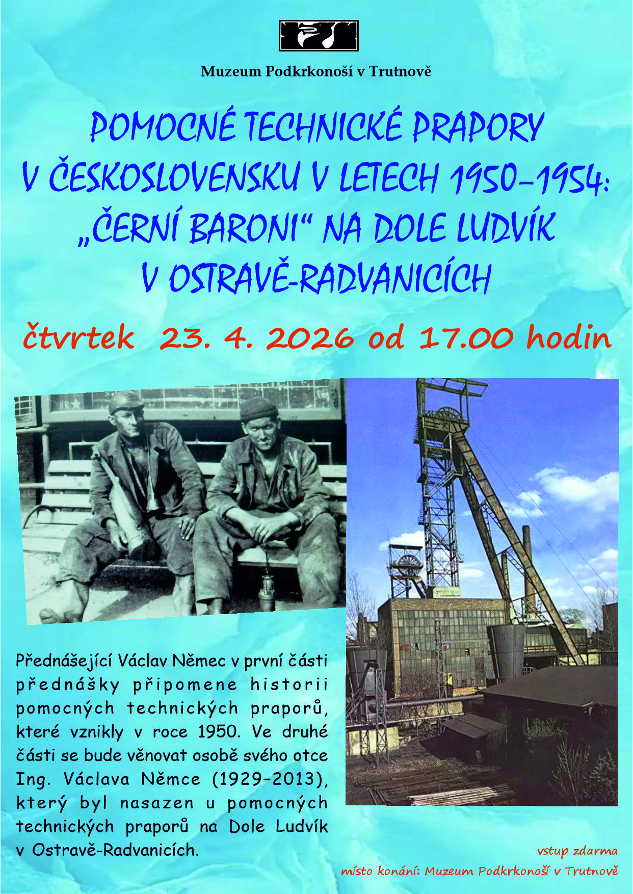 Pomocné technické prapory (PTP) byly v letech 1950–1954 pracovními útvary Československé lidové armády, ve kterých v rámci základní vojenské služby sloužili muži, které vládnoucí komunistický režim považoval za politicky nespolehlivé, tj. příslušníci bývalých rodin podnikatelů, kulaků, ale i duchovní a neodsunutí Němci. Nasazeni byli na fyzicky namáhavou a nebezpečnou práci v dolech, kamenolomech a nejrůznějších stavbách. Přednášející Václav Němec v první části přednášky připomene historii PTP, které vznikly v roce 1950 na základě rozhodnutí tehdejšího ministra národní obrany Alexeje Čepičky. Ve druhé části se bude věnovat osobě svého otce Ing. Václava Němce (1929–2013), který byl jako syn malorolníka nasazen u PTP na Dole Ludvík v Ostravě-Radvanicích. Po listopadu 1989 vstoupil do Svazu Pomocných technických praporů, kde dlouhá léta zastával funkci předsedy pro okres Trutnov. Byl také autorem expozice věnované historii PTP, která byla součástí Prvního vojenskohistorického muzea M. Frosta v Jaroměři-Josefově.
