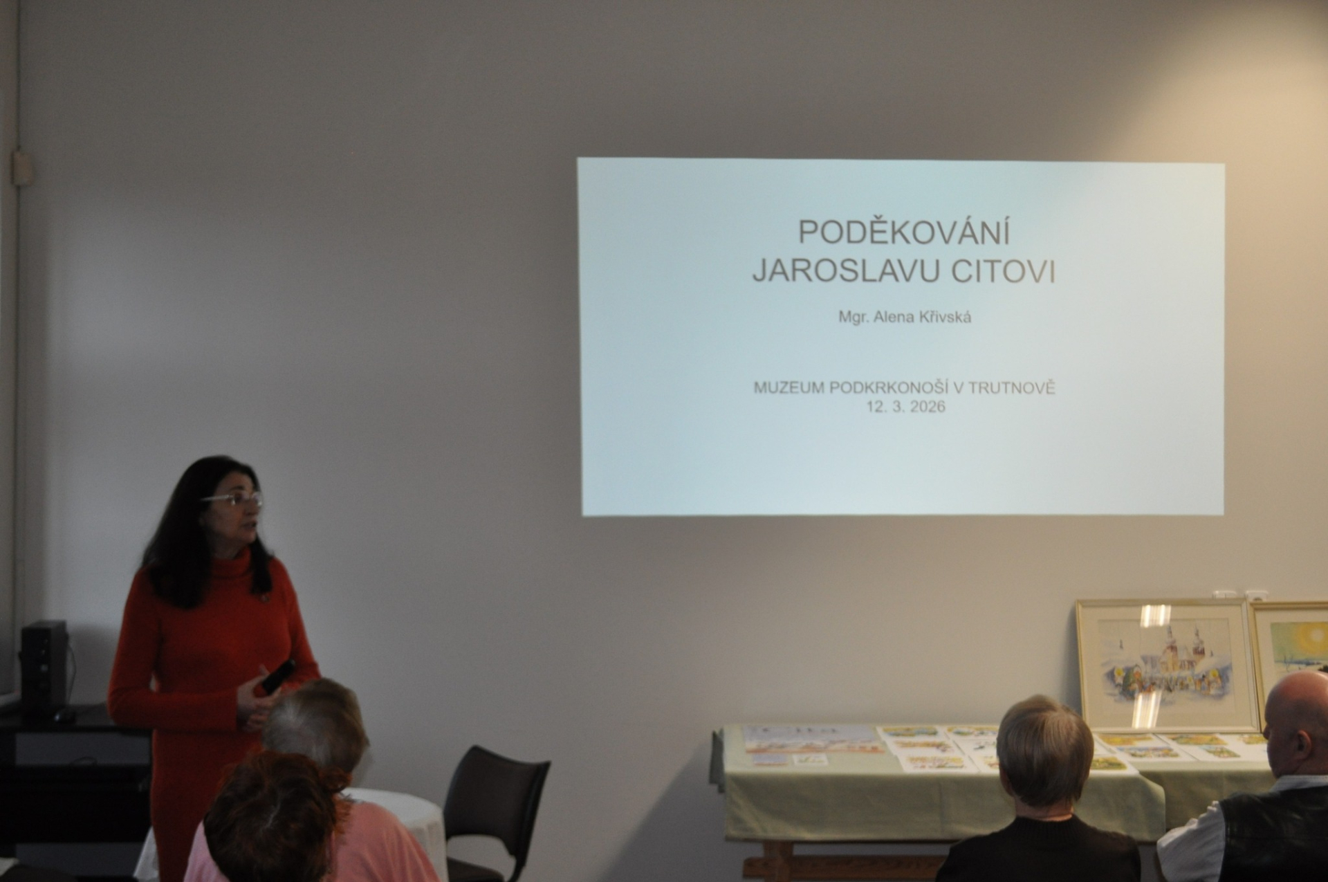 Dne 20. srpna 2026 uplyne již 100 let od narození Jaroslava City (1926–2013), významného náchodského grafika, malíře, ilustrátora, spisovatele knih pro děti, tvůrce kresleného humoru, animovaných filmů a autora světově proslulého animovaného večerníčku o Maťovi a Klinčekovi. V souvislosti s umělcovým výročím zavzpomínala na tohoto známého výtvarníka a jeho uměleckou tvorbu trutnovská kronikářka Mgr. Alena Křivská, kterou s Jaroslavem Citou pojilo dlouholeté přátelství. Měla tak možnost hlouběji nahlédnout do jeho tvorby a poznat některá tajemství její úspěšnosti a obliby doma i v zahraničí. Přednášející pozvala posluchače na malou procházku Citovým výtvarným uměním, seznámila je s jeho počátky i vrcholnými výtvarnými počiny, které zajistily jeho proslulost. To vše doprovodila ukázkami z umělcovy bohaté tvorby. Představeny byly obrazy, grafiky, kreslené vtipy i obrázky ke slavnému večerníčku. Návštěvníci spatřili převážně Citova méně známá díla z její soukromé sbírky. V závěru přednášející pohovořila o vzniku Citových ilustrací k jejímu pohádkovému vyprávění Pohádky ze starého hradu, které letos vydává vlastním nákladem jako knížku pro děti.